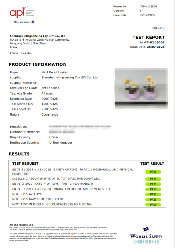 The UK and European markets have some of the strictest safety standards globally. We are an established Next supplier, and Next mandates Bureau Veritas for their compliance testing. This means our production lines and QA teams are already optimized to pass BV protocols on the first run. If your brand requires BV certification, we’ve already done it. -